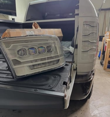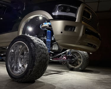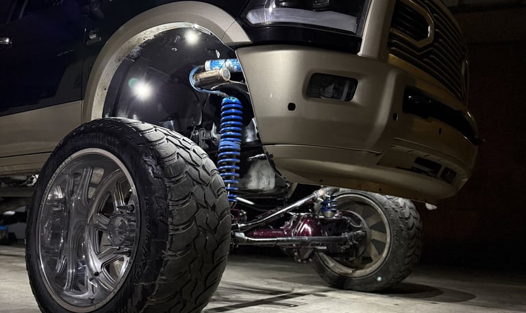 On this slick 2011 Ram 2500 Cummins we installed (24) 9LED chip rock lights. Customer requested 3 in each wheel well, 4 on each side of frame, and 2 on each the front and back. To top it off, customer brought in a set of beautiful 22x14 American Force wheels and tires he bought 3rd party and we mounted them up to get this truck show ready!